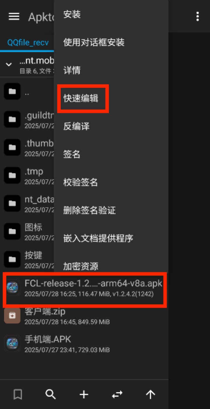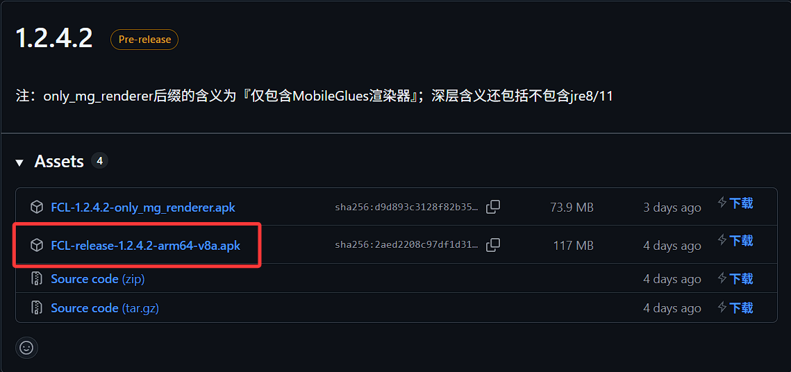 建议下载图中所示 FCL-release-X.X.X.X-arm64-v8a.apk,版本保持最新即可。