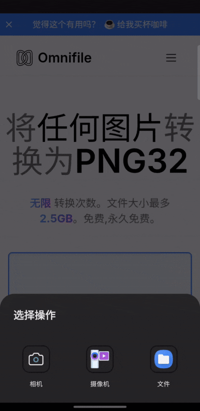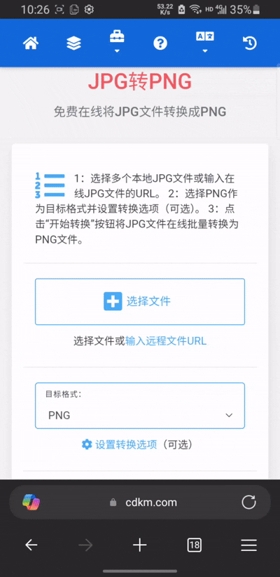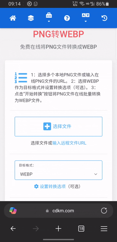 打开 PNG 转 WEBP 网站,选择你的图片。