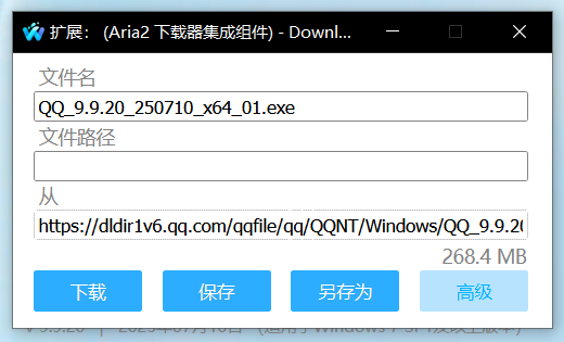 - 以 QQ 官网为例,点击下载按钮后出现了如图所示的窗口。
