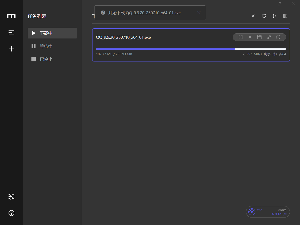 - 点击下载,即可静默拉起 Motrix,并在右下角弹出下载开始和完毕的提示。