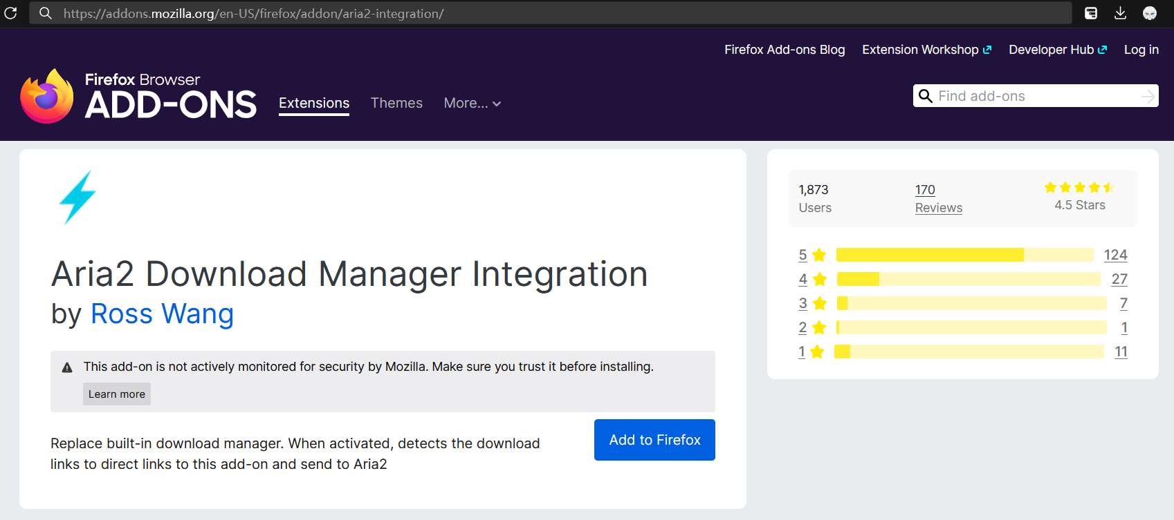 - 前往 https://addons.mozilla.org/en-US/firefox/addon/aria2-integration/,为你的浏览器安装这个拓展。