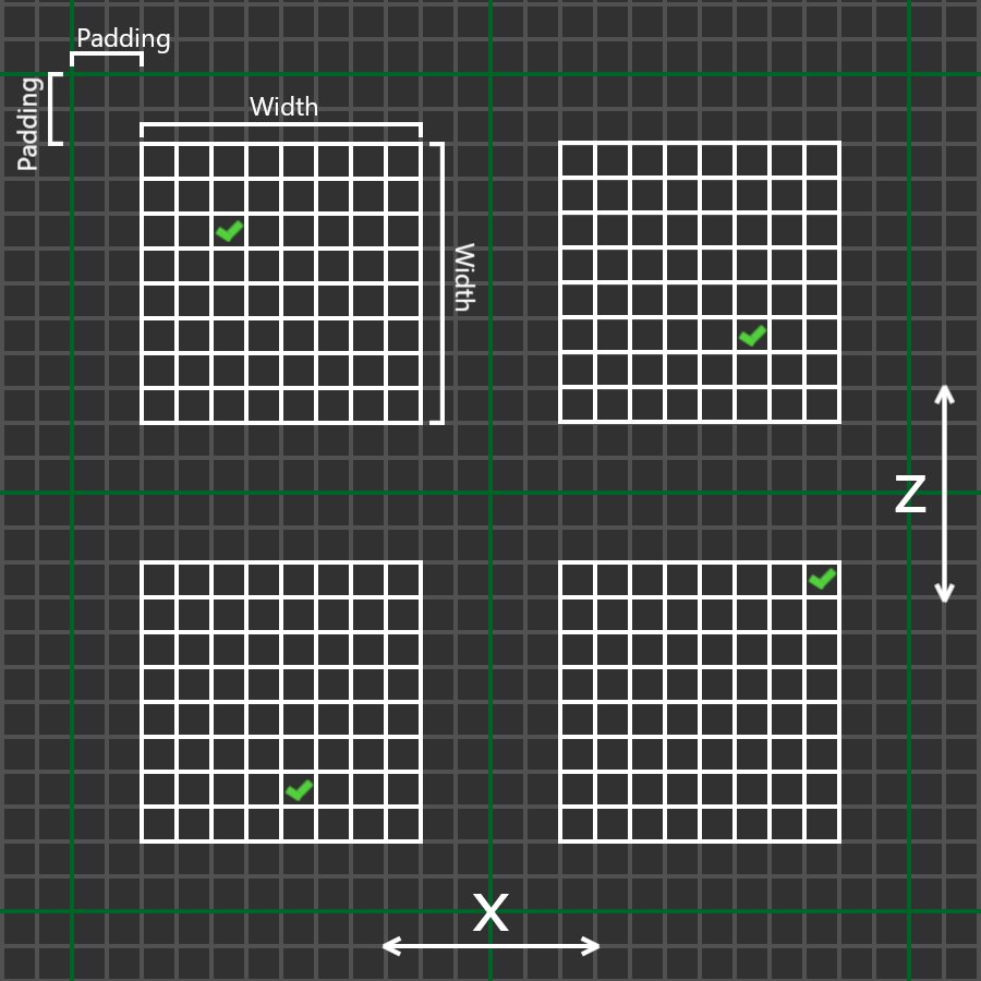 salt: 5864PADDED_GRID 分布器类型将一片区域划分为带间隔的网格,确保地物生成时不会挨得太近。