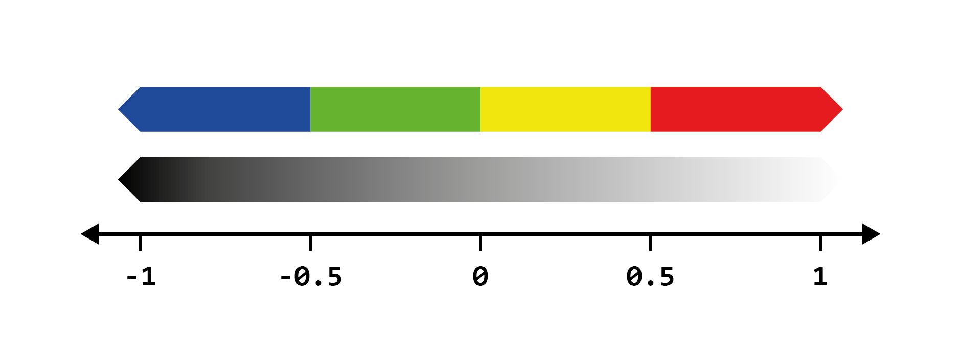 从这里我们可以看出,采样中低于 -0.5 的值会被分配为 Blue,在 [-0.5, 0] 区间内的分配为 Green,以此类推。